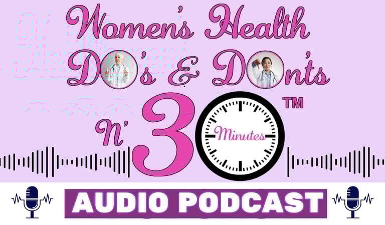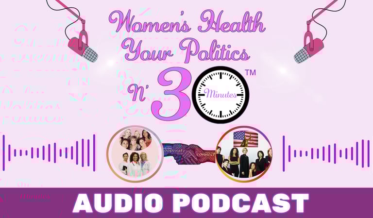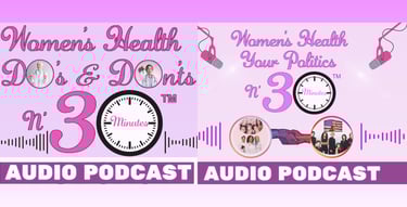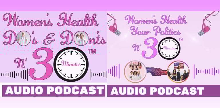 Welcome to the "Women's Health Do's & Don'ts N' 30 Minutes" Podcast! Our Experts share helpful tips on a range of topics within the health and wellness realm. The second Podcast "Women's Health Your Politics N' 30 Minutes," brings together the essential topics of women’s health and those who shape policy. Women will have the opportunity to learn from experts who will give an in-depth look at the process and share how they can make a meaningful impact. The information shared here can truly make a positive difference for anyone seeking to improve their quality of life!