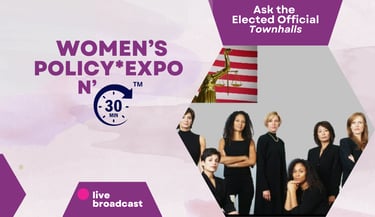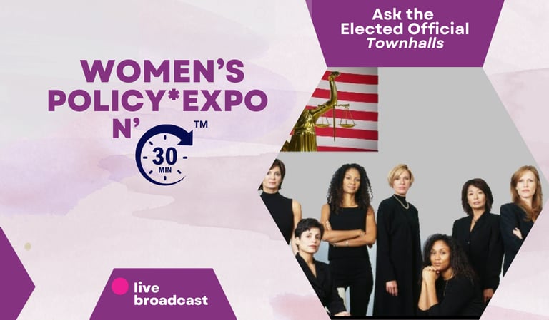 The Women's Health & Policy Expo N' 30 MIN features a civics & policy compo-nent where attendees can participate in mini-townhalls. These interactive sessions can include, but are not limited to, discussions with legislators and civic educators.